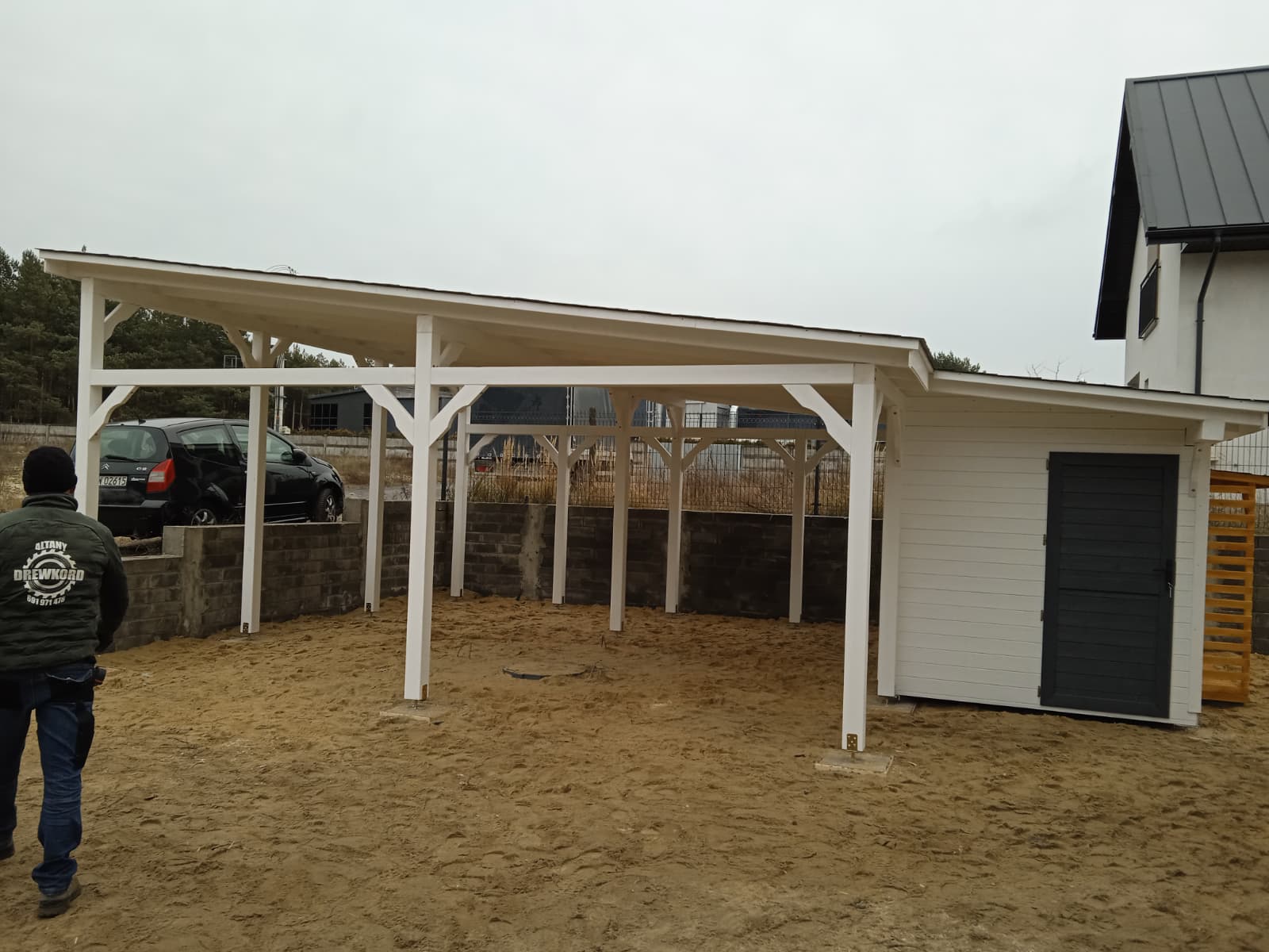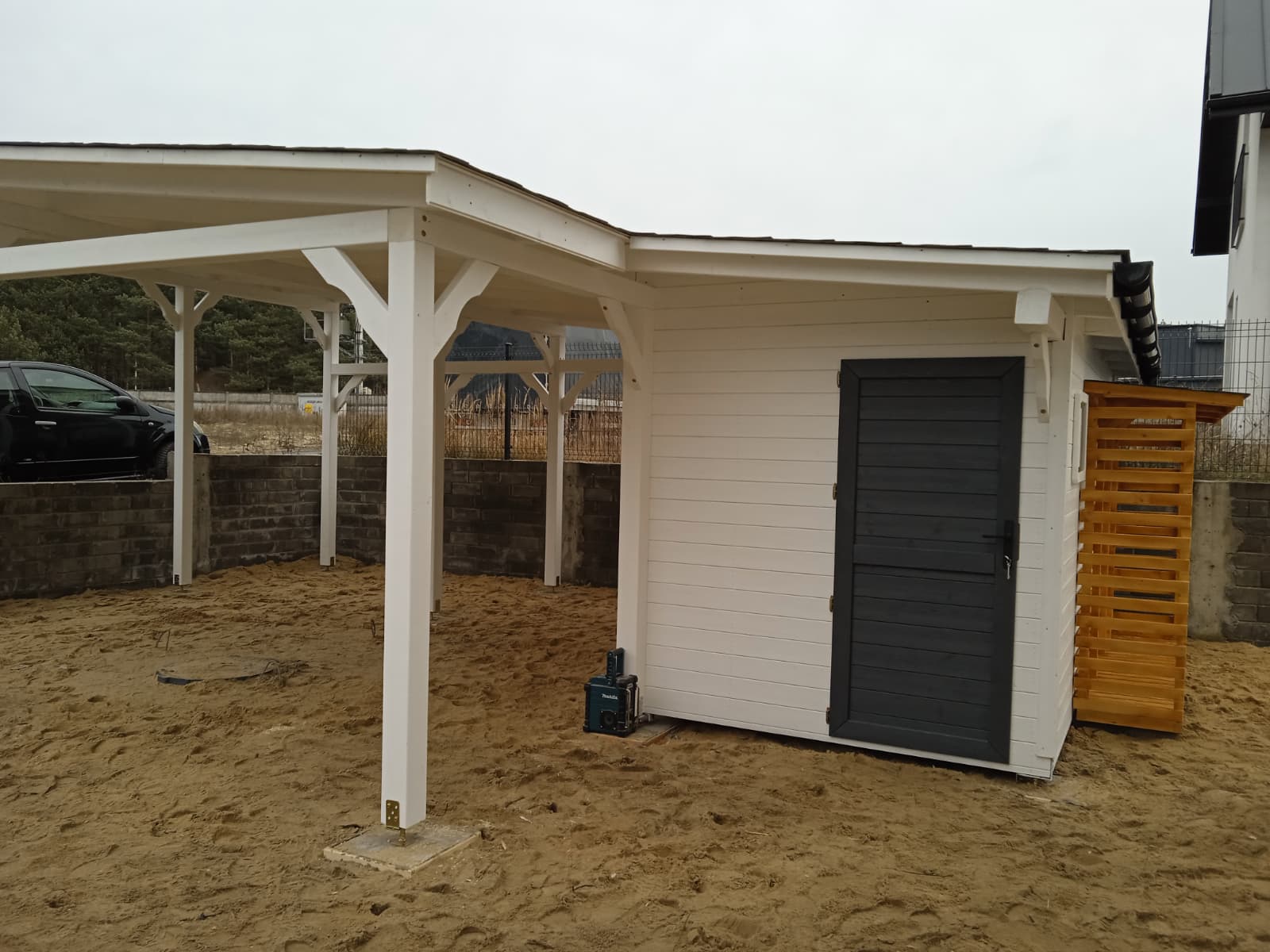 wiata drewniana 1-spadowa ze schowkiem - wersja biała